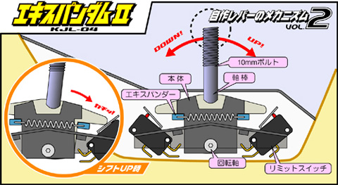 こちらがレバーの中身。程よい操作感を得るため幾つもの失敗を経て完成しました。