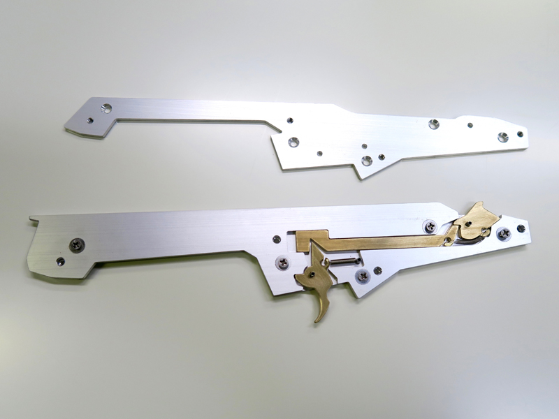 ゴム銃を手作りしていた時はステンレスを頑張って加工し機関パーツを作ったりしていました。しかしCNCフライスでステンレス加工はちょっと厳しい。そこで代わりに快削真鍮を使いました。動作はステンレスに劣らずとても滑らかです。