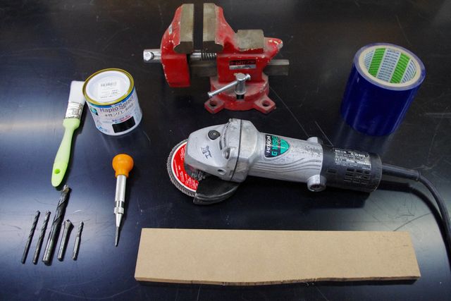 ・バイス(万力)・センターポンチ ・養生テープ(材料裏面の保護に) ・ディスクグラインダ(切り口処理が楽に出来ますが、細かな部品の加工には危険が伴い扱うには習熟が必要です) ※今回、追加オプションは一切使用しません。