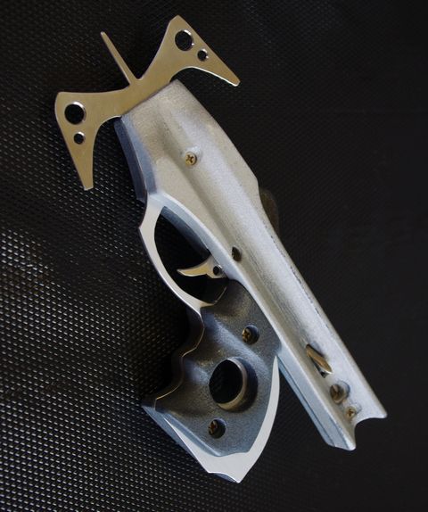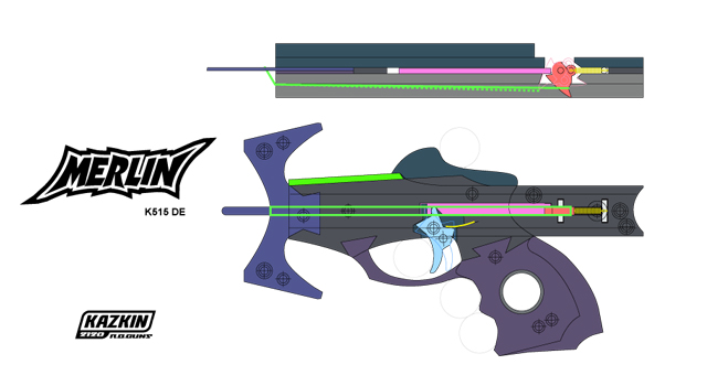 先端のホールドピンと後部のホールドフックのほぼ中間にトリガーを配したミッドシップレイアウト。