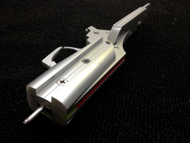 オーソドックスなゴム銃は縦にした平板を重ね合わせたフレーム構造をしているが、今作はリアのホールドフック周辺のみに横にした平板を重ね合わせたフレーム構造を採用。この縦フレームに対し横フレームがT字型に交わる構造により、高い剛性を保ちつつ、全高を低く抑えたミッドシップレイアウトを実現。