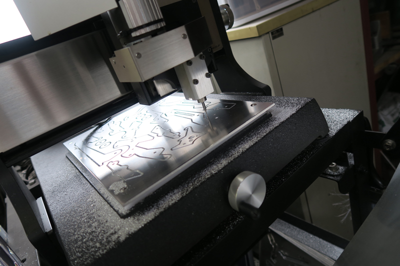 もちろん切削しただけでは出来上がりません。まずシートに繋がれた状態で穴加工。ドリルを使い皿ざぐりやタップ加工を施します。同梱の加工図に詳細が記されています。
