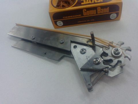 歯車を巻きながら溝に輪ゴムを装填していきます。