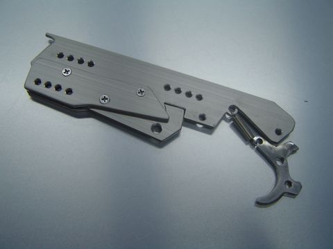 トリガーガード一体式は、総ビス数を抑えつつ全体の剛性を保つ為の手法。