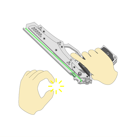 銃身と平行になるよう真っ直ぐに伸ばして下さい。