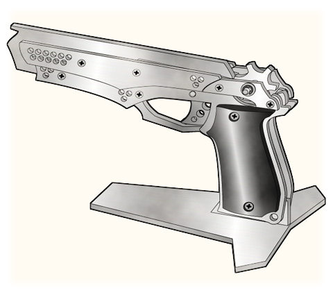 ホールドグルーブからホールドフックまで引き伸ばされた輪ゴムが、トリガーを引く事で解放され、自らの収縮力で銃身をなぞりながら前方へと発射されます。