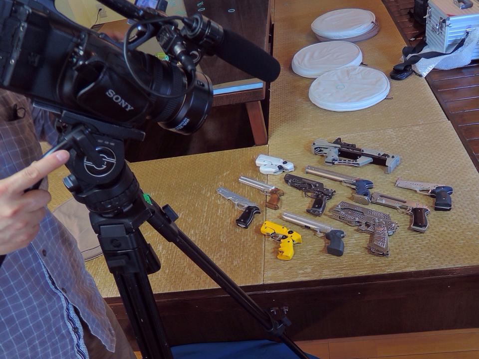 撮影場所は僕の仕事場であり、ゴム銃を作ってる場所です。