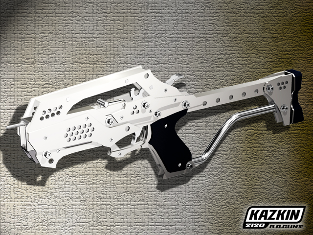 夜な夜な仕事場で、このサブマシンガン型ゴム銃を作ってます。