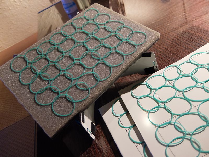 2,3ラウンド目用の輪ゴムも別の板に並べておき、スポンジの上に転載させることで、