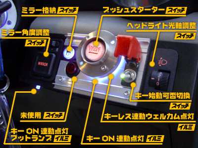 キーを回すだけでエンジンが掛るのか、ボタンを押さないと掛らないかの切替スイッチ。