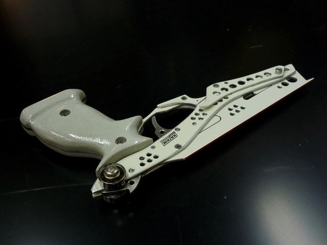 グリップ芯材下部と機関部パーツはステンレス(3mm厚)を使用。