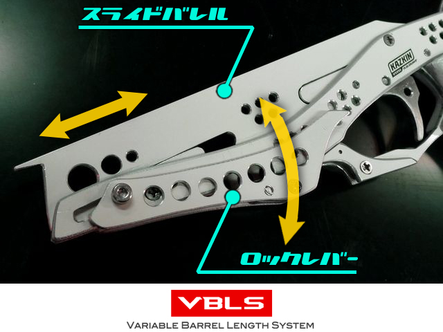 バレルの長さをワンタッチで切替る機能を搭載。競技種目に応じ、銃自らその特性を変化させる“万能性”を有す。