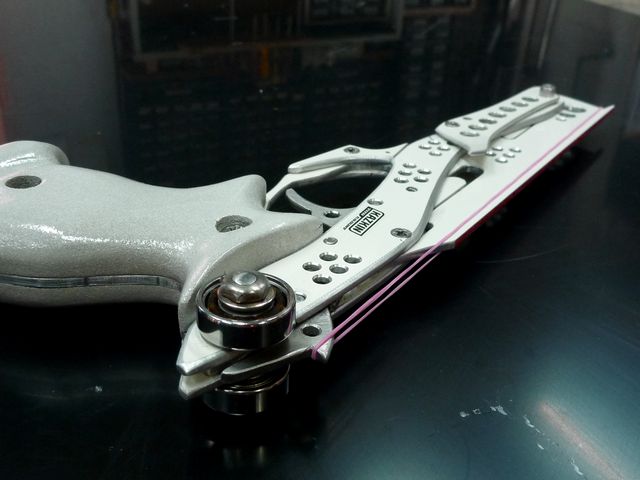 Mk-IIに採用した“アシストホイール”を引き続き搭載。滑らかに回転するベアリングが、指からホールドフックへ輪ゴムを優しく解き放つ。