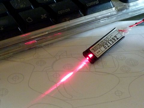 内蔵型のレーザーサイトにする場合、こうした部品を集め自作した方が、簡単で安上がりだったりするんですよ。これはベテランのゴム銃作家さん達が既にやられている事で、僕はそれを参考にさせて頂いたまでです(^^ゞ