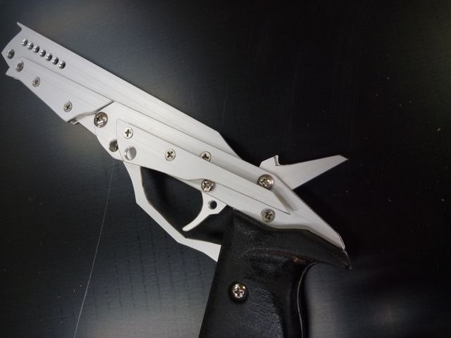 鋭いイメージのデザインにしつつ、競技で使う事も考えてグリップとかは握り易い形状を心がけたんですよ。簡単製作で安価なものをと思っていたのに、結構手間のかかる作品になってしまい・・・w