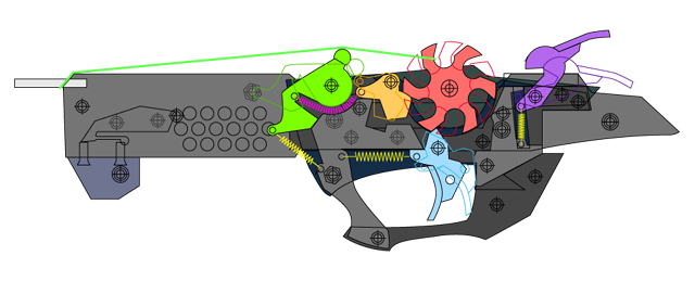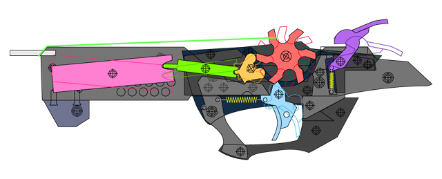 そこで、やはりフルオート式ゴム銃の遅延装置機構として確立されている