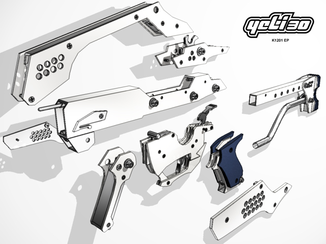 銃身兼メインフレームは20×40mmの角パイプを使用。機関部ユニットは3mm厚のアルミ板の5層構造。他に回転翼ユニット、グリップ、可倒式フォアグリップ、開閉式バレルカバー、装甲板、ストックなどで構成されている。