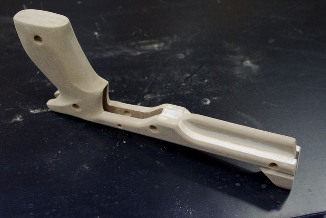これまでの作品ではグリップのみに用いてきたMDFを今回はメインフレームに起用。木材主体のデザインとなる。