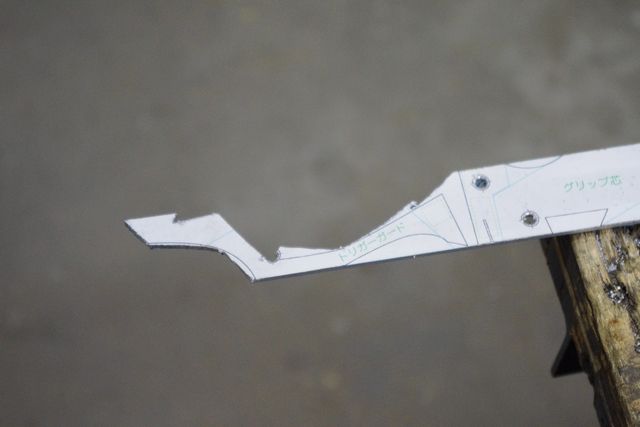 今回は切断工程で最大の難関、トリガーガードの切り出しからです。