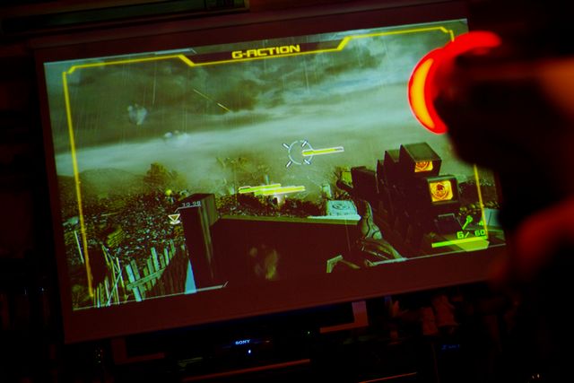画面が大きい方が精密射撃に有利かと思い、プロジェクターまで使いだす始末(^^ゞ
