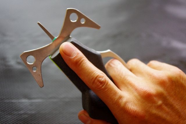 ホールドピンは人差し指のすぐ先に位置し、爪先に輪ゴムを掛けるかのような感覚で装填を行える。またピンの上下に翼のような大型のガイドを設けたのは、装填ミスによるタイムロスを避ける狙いで、未だ体得には至っていない“フィンガーマガジン”という新しい装填方式も視野に入れた設計。