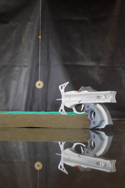 そして辿り着いたのが、コインの振り子周期をも無視した高速射撃です。先に上げた各部の工夫と猛練習の末、1分間に42発が発射可能に。弾数が増えたぶん命中率は落ちましたが、これまで不可能と思われたスコア領域も視野に捉えることができました。そう、取材を通じ得るものは大きかったのですよ。で、肝心の結果は・・・番組をご覧あれ ┐(´ー`)┌